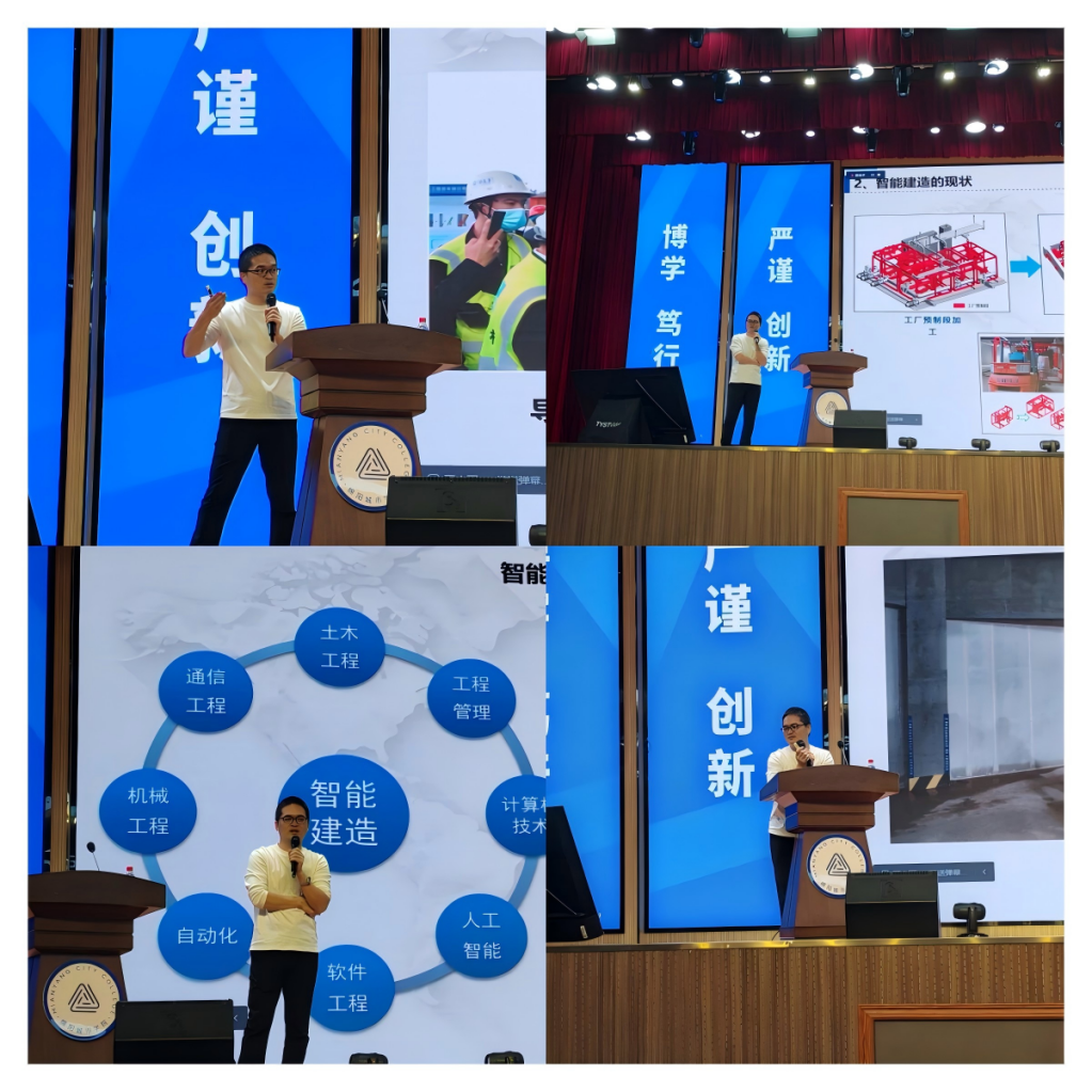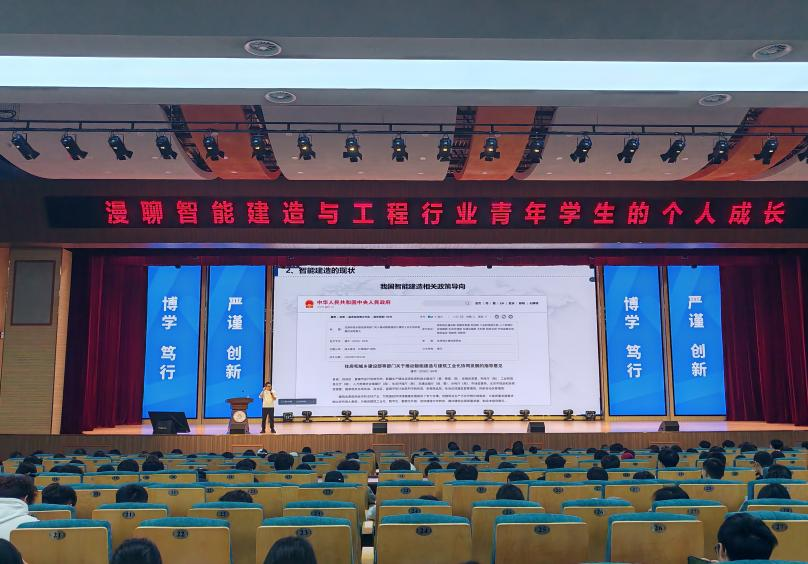 报告中,牛智祥结合企业实践,系统剖析土建行业由自动化向智能化演进的技术瓶颈与突破方向,强调“数据协同、全生命周期管控”才是智能建造的核心要义。他分享了“专业课+数字化能力”双轮驱动的学习方法,建议学生以现场需求为导向,强化编程思维与工程管理协同训练,并逐一解答了关于核心能力构建、科技创业趋势等提问,为师生奉上兼具深度与温度的成长指南。