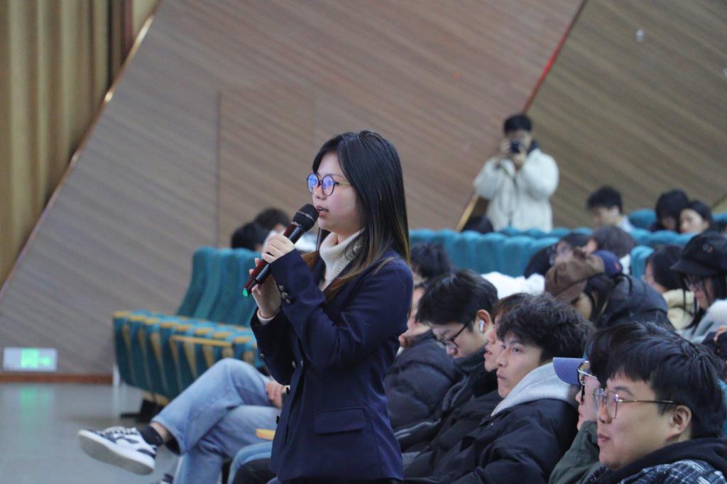 互动环节,同学们就“技术伦理”“叙事角度选择”等问题踊跃提问。王琦鼓励大家做文化的“转译者”与“创生者”,用沉浸体验、虚拟叙事、智能生成等手段,让非遗在数字时空延续生命。