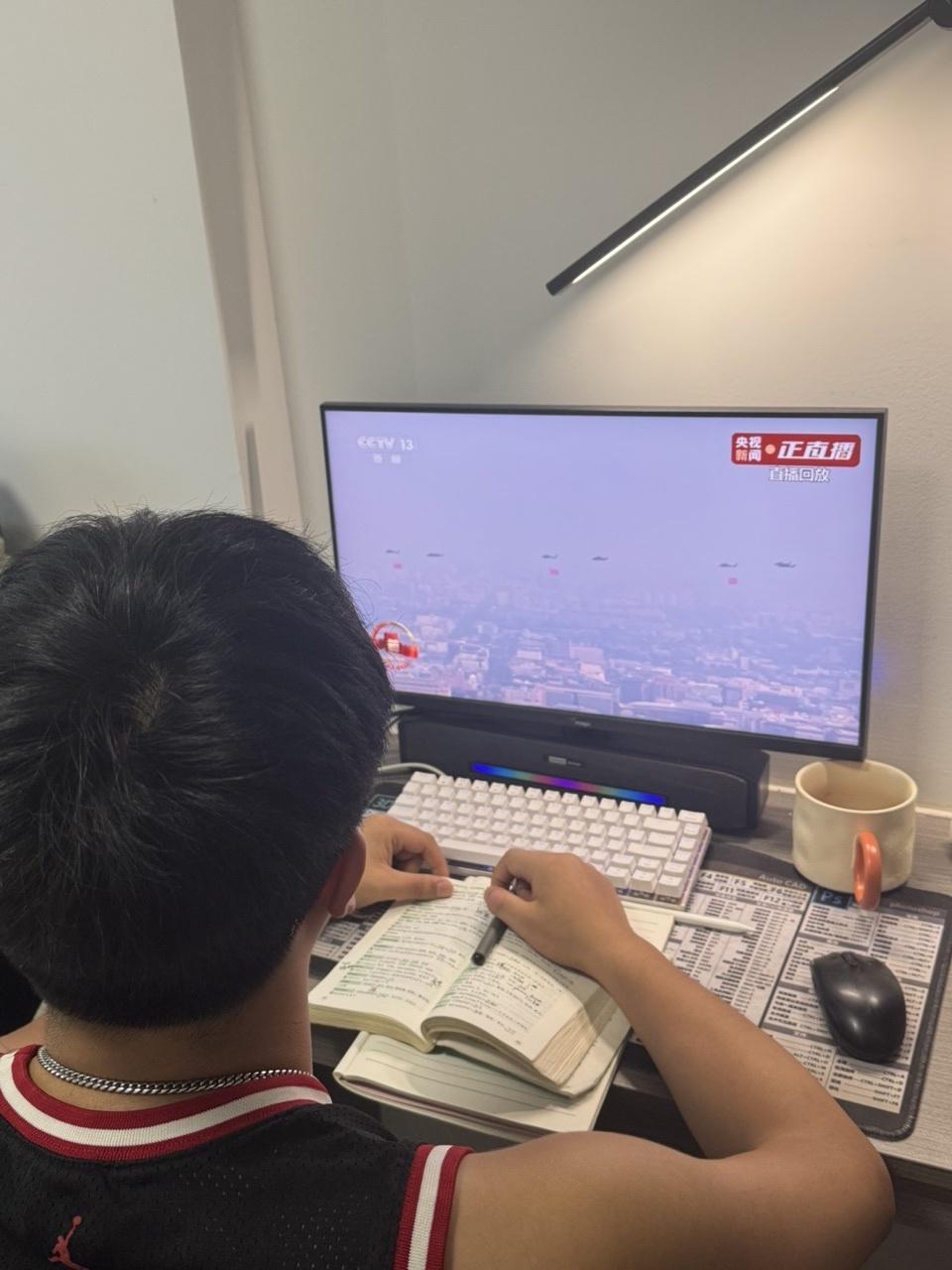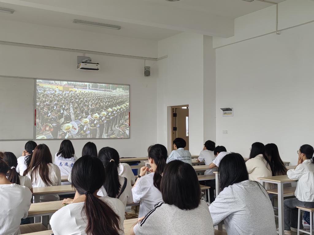 上午8:30,学院在北二202、301教室设置集中观看点,未返校学生则通过移动端分散收看。当受阅方队整齐划一通过天安门广场,先进装备依次亮相,现场师生发出阵阵赞叹,气氛庄重而热烈。
