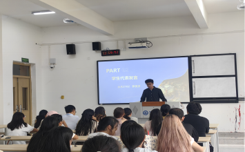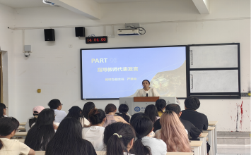 学院教研办副主任严慧中作为指导教师代表发言,希望同学们在助理岗上持之以恒,不轻言放弃。大会还向全体助理岗同学公布了本学期重点工作内容。