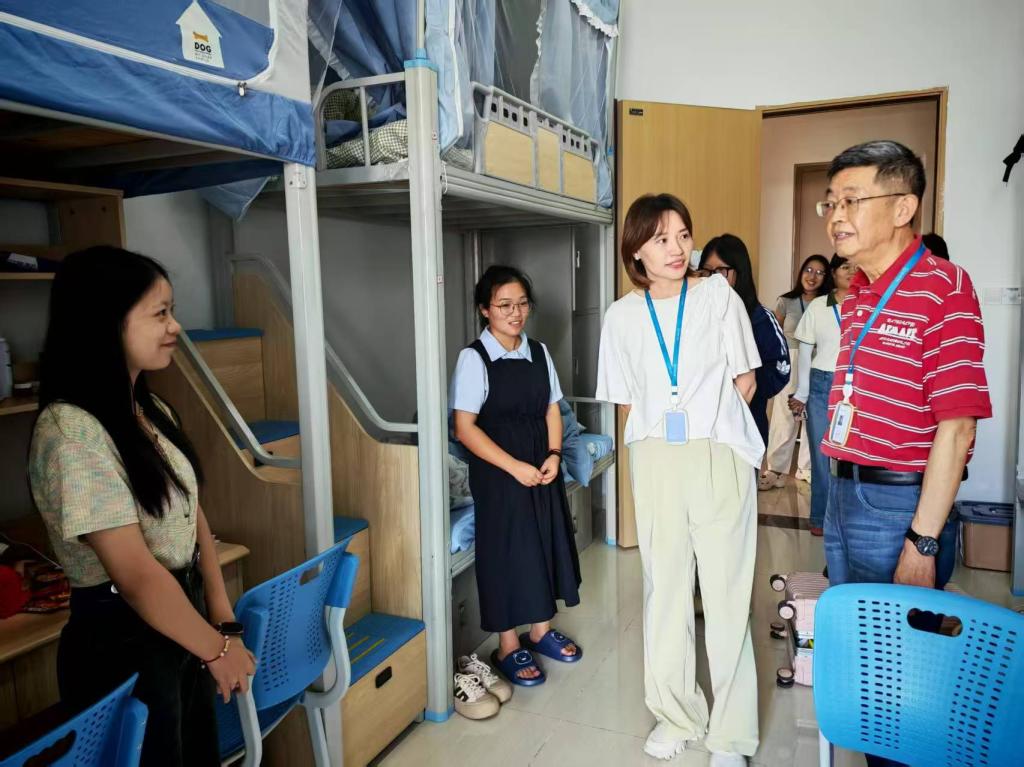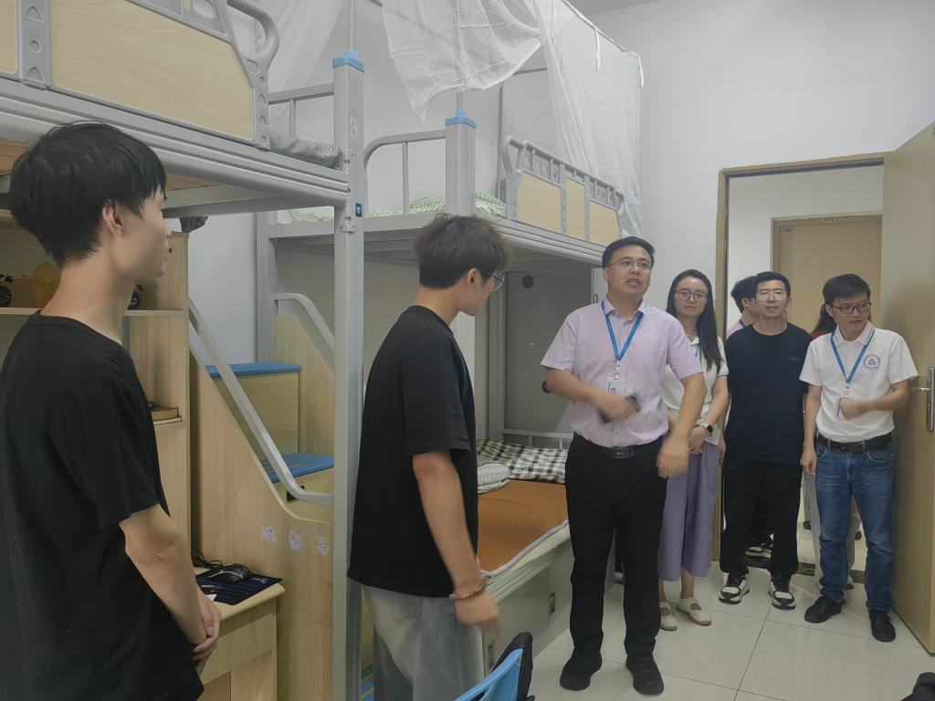 “不交叉、不遗漏、不打扰”——学工办提前绘制“寝室路线图”,网格化分区、时段化预约,让走访高效有序。每到一间宿舍,带队领导先核验假期施工改造“零故障”,现场对空调清洗、家具检修、网络升级逐项确认;与新生及家长面对面交流,记录外省同学饮食、气候、语言等适应需求,要求综合办实现“24小时快响”,要求教研办密切关注专升本学生课程衔接,要求辅导员同步建立“关爱档案”,每日夜访跟踪。
