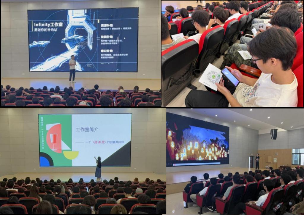 三大工作室同步推出沉浸式体验:视频组研讨影像价值,创意组AR扫码激活海报,Infinity组展示学生游戏作品,呈现“课堂即创作”路径。