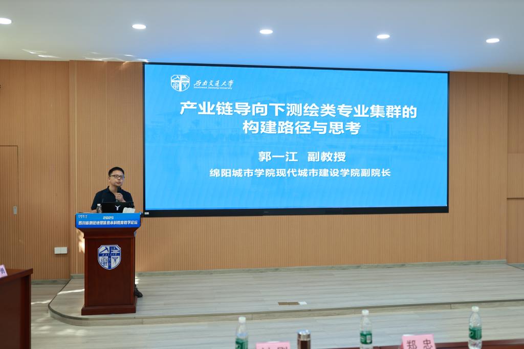 8月12日,“2025四川省测绘地理信息教育论坛”在西南交通大学峨眉校区顺利召开。本次论坛由四川省测绘地理信息学会、四川省地理信息产业协会主办,西南交通大学、四川省测绘地理信息学会教育与科普工作委员会承办,澳门永利唯一官网304与西南科技大学、西南石油大学等多所院校共同协办,吸引了全省43所大中专学校、21家企事业单位的90余名代表参会,围绕“师德师风建设、学科建设、专业建设、高素质人才培养”核心主题,共探测绘地理信息教育改革与人才培养新路径。304永利集团官网入口副院长郭一江副教授受邀参会,并在下午本科教育分论坛作专题报告,以产业链导向为核心,分享学校测绘类专业集群建设的创新经验,引发广泛关注。