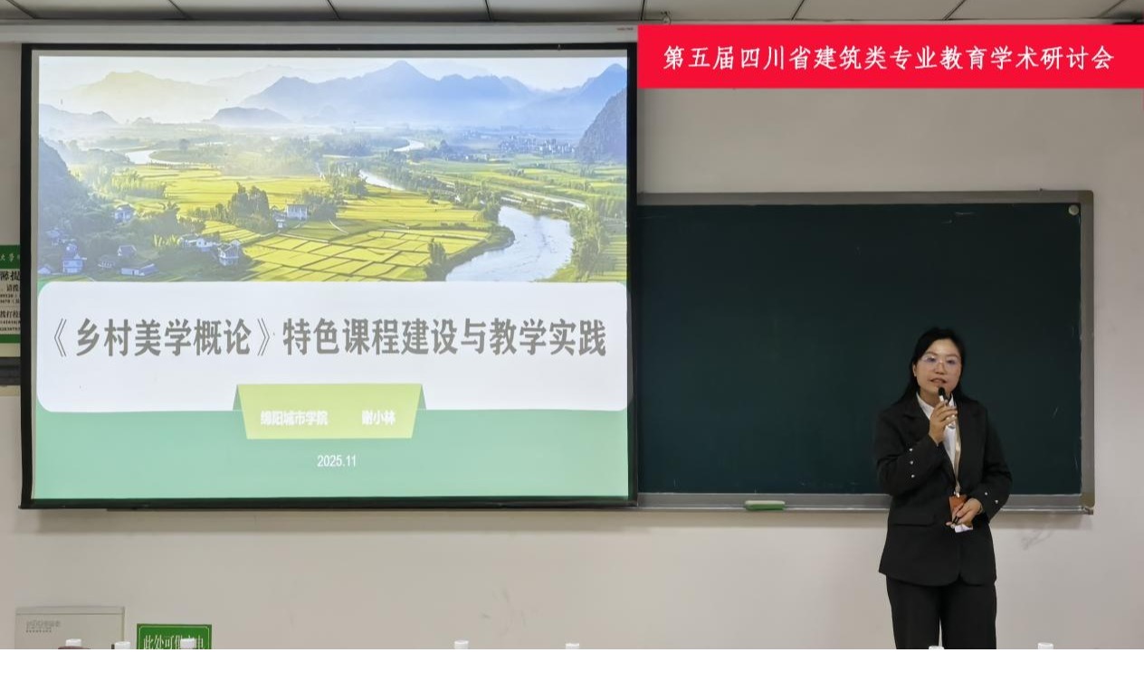 11月15日,"第五届四川省建筑类专业教育学术研讨会"在四川农业大学举行。304永利集团官网入口谢小林副教授受邀在教学实践分论坛作专题报告,系统介绍《乡村美学概论》课程建设与教学成果,为建筑类专业融入乡村振兴提供了可复制、可推广的"绵城方案"。