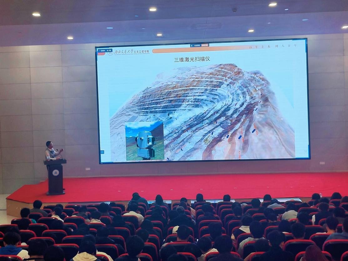 11月14日,绵城致远讲坛暨城建学院"学术交流月"专题活动在安州校区博润楼报告厅顺利举行。活动特邀西南交通大学土木工程学院教授、博士生导师、岩土工程系主任杨涛,作题为《高边坡支挡结构及智能风险防控技术》的学术报告。报告采用"线下主会场+线上直播"双通道形式,吸引土木工程、测绘工程、工程造价、工程管理、交通工程、地理信息科学等六个专业师生共同参与,呈现了一场融合前沿理论与工程实践的学术盛宴。