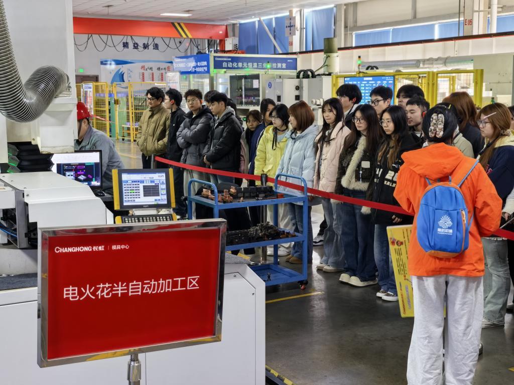 11月21日,学院2024级产品设计专业近百名师生赴安州区长虹双创智能制造园,完成《设计程序与方法》移动课堂实践教学。在国家级双创示范基地的生产一线,学生直观感受“设计——制造——场景”全链路,将CMF设计、公差控制、装配工艺等课堂理论与智能制造过程精准对接。