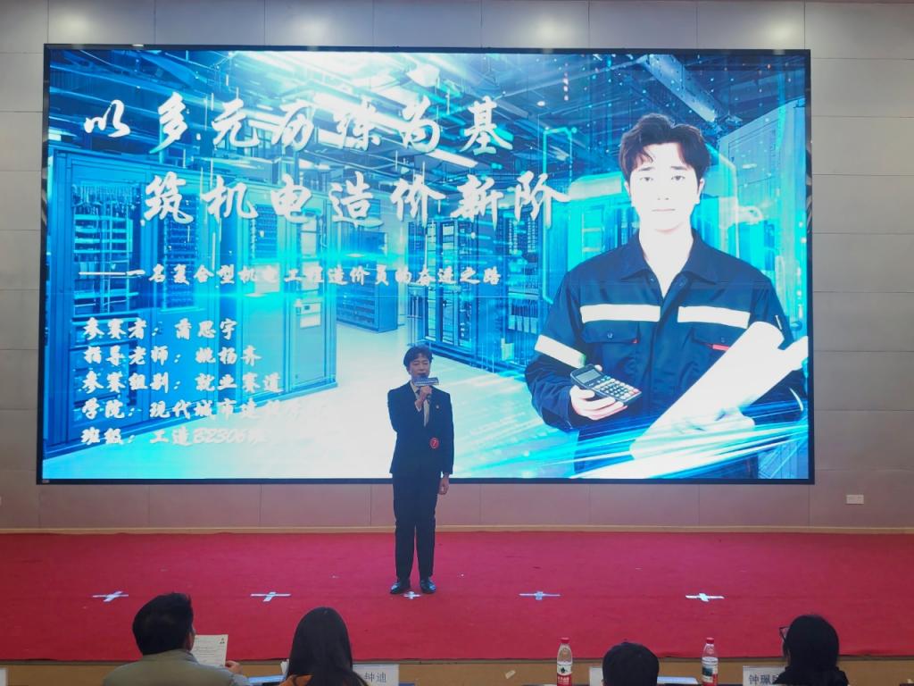 赛事采用“初赛材料评审+决赛现场展示”两层选拔模式。决赛现场,选手依次围绕职业画像、行业调研、实施路径及风险应对等方面进行汇报,并回答评委提问。选手们思路清晰、逻辑严谨,提出的“三段九年”阶梯式成长方案赢得阵阵掌声。