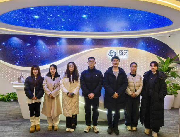 下午,团队抵达成都海艺互娱科技有限公司,考察企业数字内容创作体系与运营模式。技术研发部负责人通过案例演示与技术拆解,生动展示游戏AI技术在场景搭建、角色动画生成等方面前沿应用成果。随后,双方就实习基地共建、校企联合项目开发、师资双向交流等核心议题进行务实洽谈,明确合作方向与推进路径,达成多项共识。